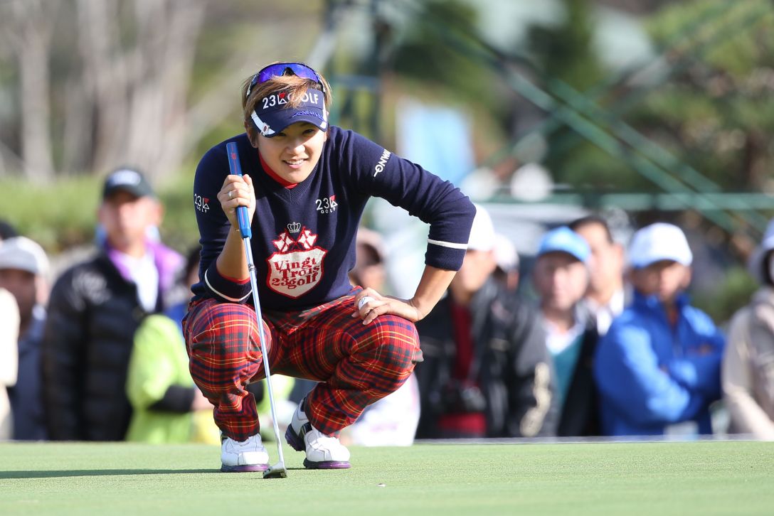 目の色が違う。新たな目標を掲げ、成田美寿々が首位スタートを決めた。「残り2戦。2連勝です」。今大会と最終戦『LPGAツアーチャンピオンシップリコーカップ』を連続Vで、年間獲得賞金1億円突破を狙う。日本人最上位の賞金ランク5位に入った、昨年もチャンスがあった。しかし、105万3107円と、あとひと押しが足りず、夢の大台を逃している。「悔しかったです。だから、より高い目標を自分に課してみた」。このところ、ロングパットの距離感が合わず、試行錯誤を繰り返してきたが、前週の『伊藤園レディスゴルフトーナメント』第2日、浮上のきっかけをつかんだという。「このままでは、予選落ちという状況でした。でも、残りの5ホールで4バーディーが獲れた。その感触がとてもいい」。プロゴルファーにとって、バーディーはやはり特効薬だ。