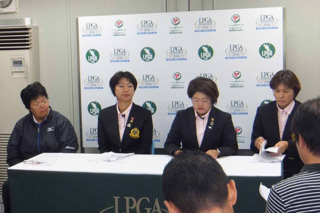 コースセッティング担当・岡本綾子が、「1カ月前、すべてが予定通りに進んでいた。でも、台風による雨量が多く、これだけは想像外。機械を入れて刈ることも考えた。しかし、そうなると、他に影響が出る。ということで、選手に厳しい状況で戦ってもらうことになりました。私たちプロは、自分の飛距離が頭にしっかりと入っている。だから、ラフが長くてもプレー時間などには影響はないでしょう」と説明している。また、ツアー史上最長ホールの605ヤード、パー5の5番について、「ここの名物ホールが欲しかった。海に向かっているから、風も吹くでしょう。難度があるパー5です」という。
