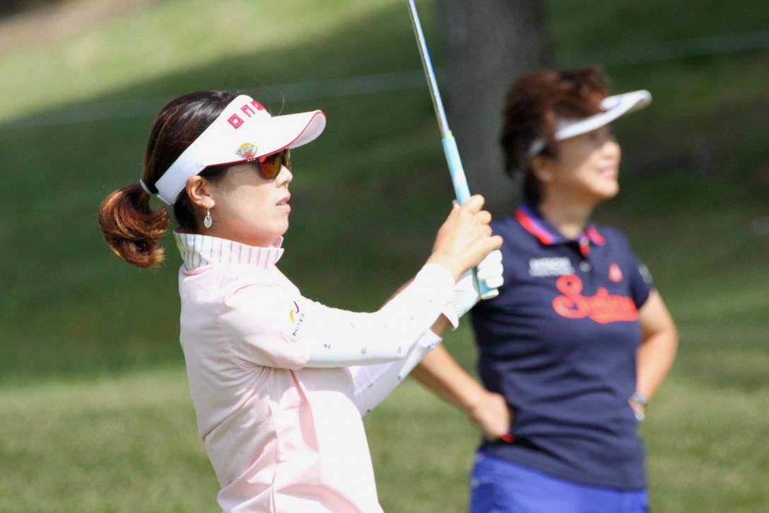 好事魔多し-とはよくいわれることだ。今大会のディフェンディングチャンピオン、李知姫は前週のマンシングウェアレディース東海クラシックを途中棄権。思わぬアクシデントに見舞われた。「女子プロゴルフ選手権で優勝した後だったから、とてもショック。でも、右手首を痛めたのは、選手権でした。特に、最終日。ラフからのショットが結構、多かった。プレー中は夢中だから痛みは感じなかったけど…。愛知から韓国へ帰国し、きのう仙台へ入った」と説明している。通院し、右手首に針治療。「すごく痛かったけど、信じられないぐらい良くなった」と、表情は明るい。