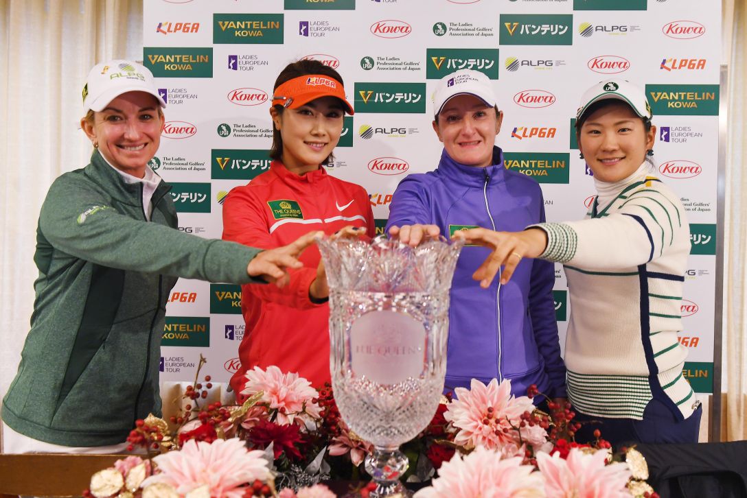 2017年LPGA特別後援競技、4大ツアーによる国・地域対抗戦『THE QUEENS presented by KOWA』(賞金総額1億円・優勝チーム賞金4,500万円)が12月1日、愛知県みよし市・三好カントリー倶楽部西コース(6,400ヤード/パー72)で開幕する。11月30日は、前日会見が行われた。