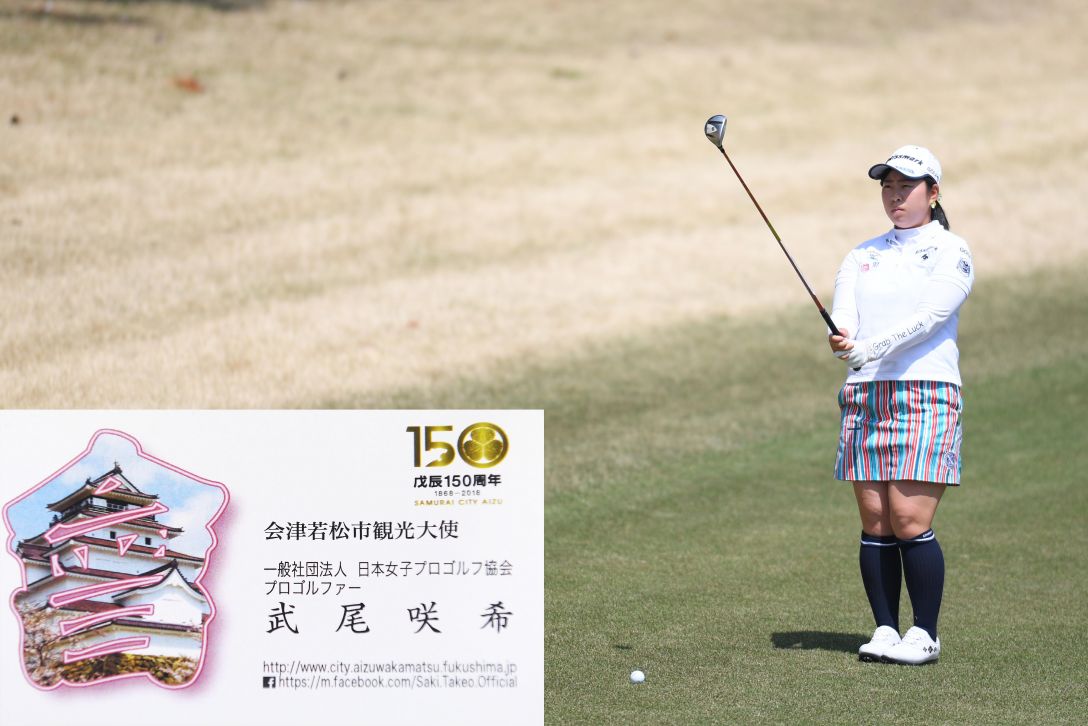 名刺は自分の顔のようなもの。ところが、女子プロゴルファーは、自分の顔が名刺代わりである。この日、クラブハウスで選手から名刺をいただいた。極めて珍しい。そこには、『会津若松市観光大使 武尾咲希』と記されていた。
