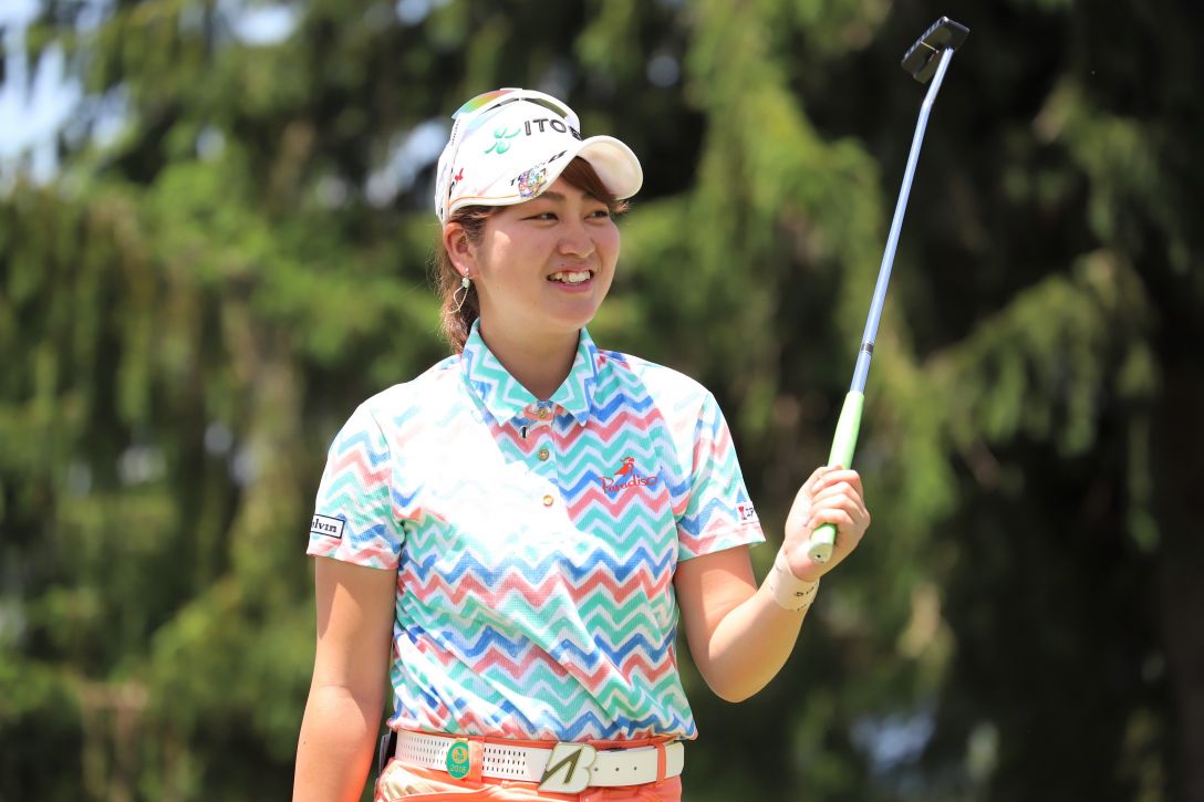 『自分にやさしく』。悩み過ぎることが多かった田辺ひかりの今年のテーマ。「そう自分に言い聞かせています。自分を追い詰め過ぎる癖があったけど、悪かったら仕方ないと割り切るようにしました。今年はショットが良かったけど、パッティングが全然ダメだった」。が、今日はそのパッティングが冴え渡った。4番、5番の連続バーディーはともに4メートル。9番では手前のカラーから6メートルを沈め、イーグル奪取。最後も5メートルを沈め、1イーグル、5バーディー、2ボギー。5アンダーで、プロ入り後、初となる単独首位発進を決めた。