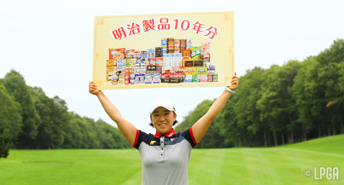 「今回優勝したら、明治製品10年分をいただけるという話を聞いて、本当に欲が出ました」。もちろんこの人に限って、それは自分のためではない。「恵まれない子供たちのために寄付したいという気持ちが芽生えて、是非勝ちたいと思いました」。通常、欲は勝負の邪魔をする。結果がメンタルに左右されやすいゴルフは尚更だろう。しかし、ファンサービスを常に心がけプレーする彼女にはそれが力になるようだ。