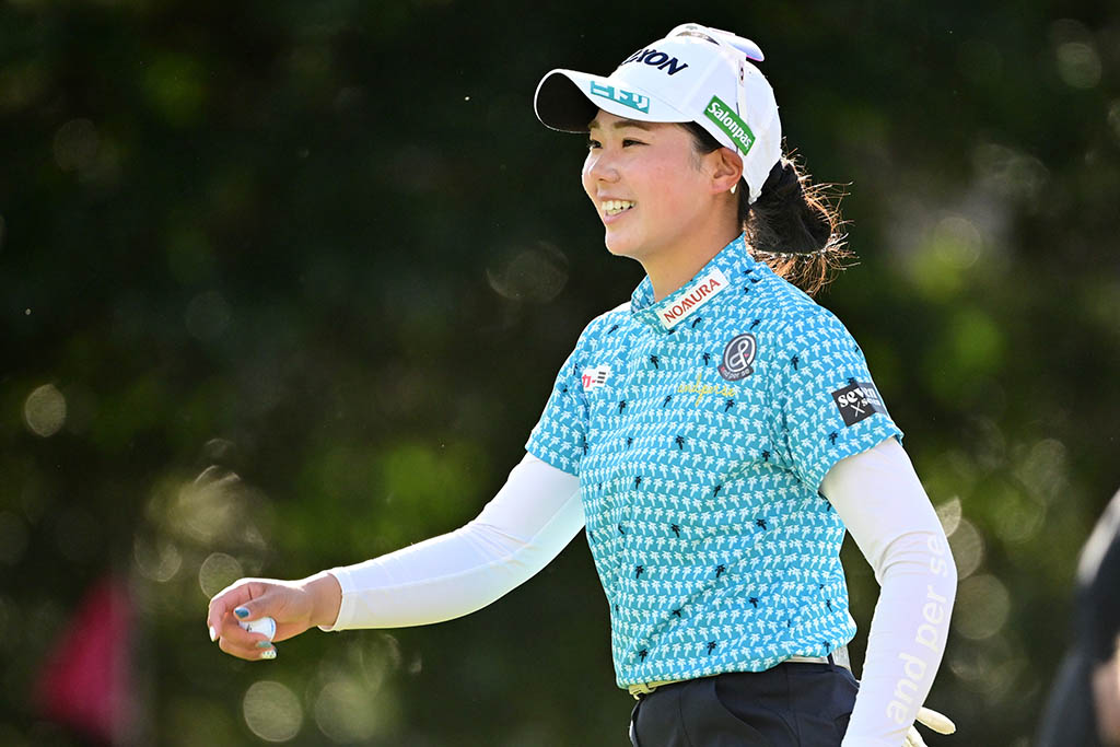 「きょうの目標は5アンダーだったので、クリアできて良かったです。(6連続バーディー)葛城ゴルフ倶楽部は苦手意識があって、いつボギーがくるか分からないコースなので、獲れるときに貯金を作っておきたいという気持ちがありました。バーディーがポンポンときてくれたおかげで、いいスコアで回れました。あすもパッティングが勝負になってくると思うので、難しいパッティングでもバーディーパットを入れられるように頑張りたい。勝ちたい、早く」