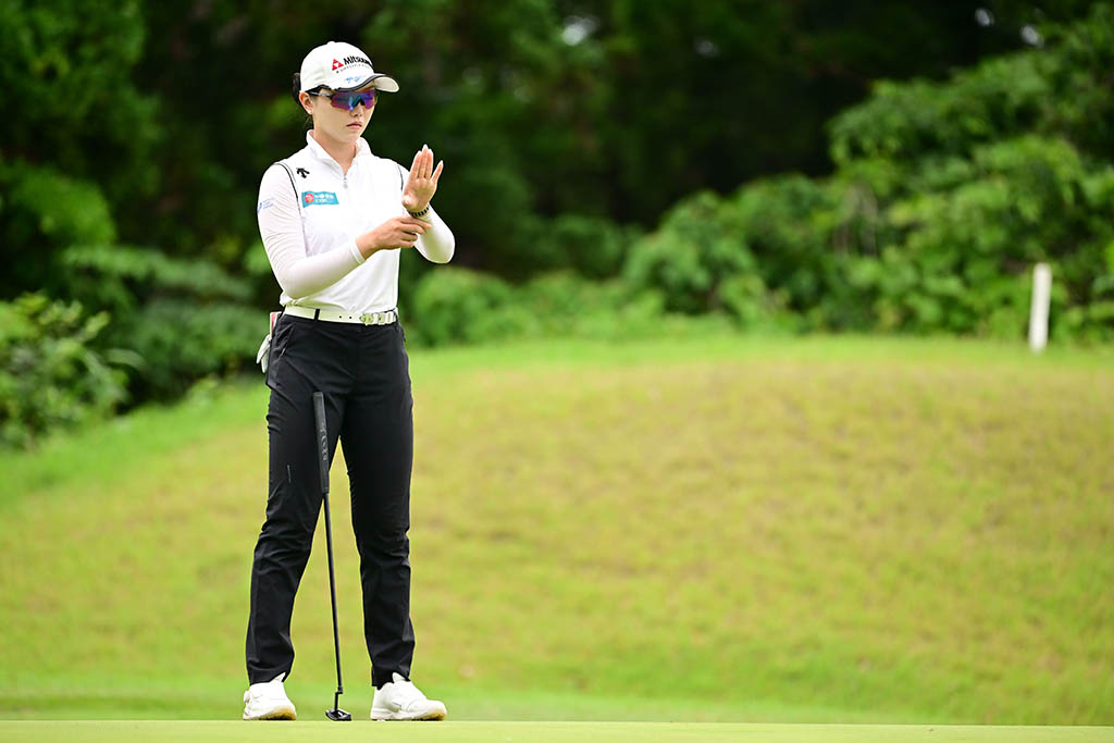 「きょうはショットがよく、ノーボギーで回れたのがよかったです。前週まではショットの感触が悪かったので、今週は振り切ることだけを意識していたら、気持ちよく振れるようになりました。この後、ショットとパッティングの練習をします。あすも頑張りたい」