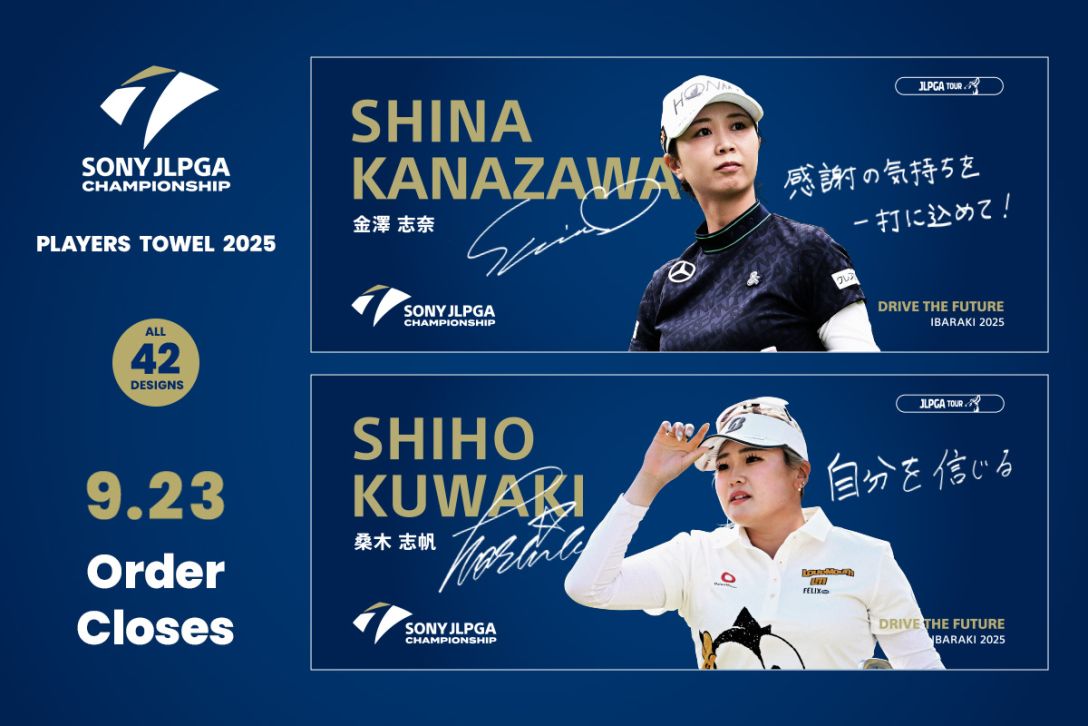 2025年『ソニー 日本女子プロゴルフ選手権大会』の開催を記念したグッズ「ソニー 日本女子プロゴルフ選手権大会 選手メッセージタオル」 は、大変ご好評の中、会場での販売を終了いたしました。
