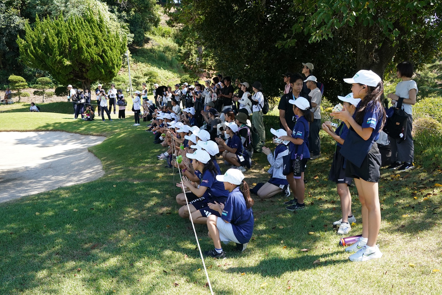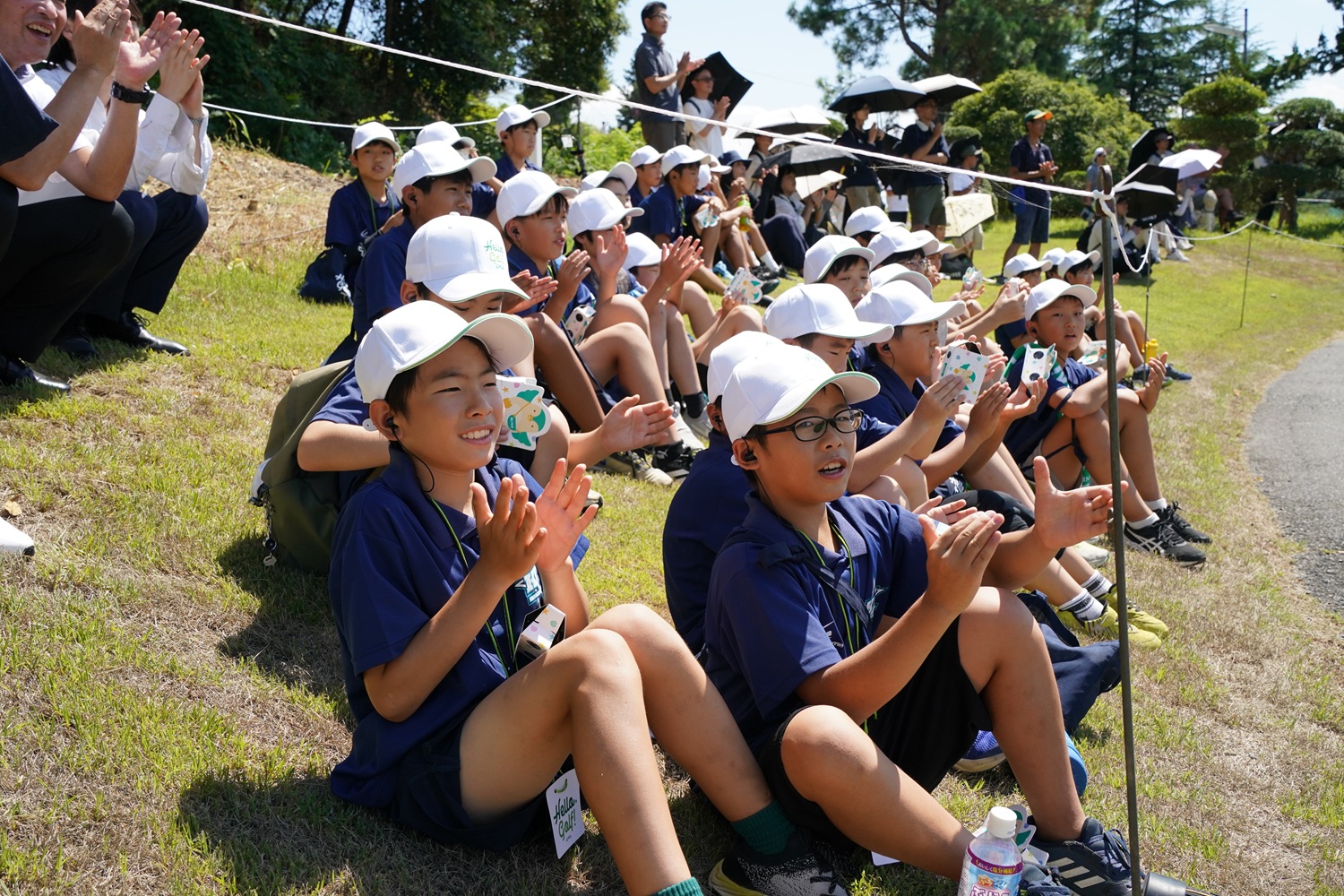 世界で活躍するアスリートを育成するため、神奈川県が主導して行っている「かながわジュニアチャレンジプロジェクト」のかながわジュニアスターズ2期生・3期生(小学5年生・6年生)64人を招待。開催コースの東名厚木カントリー倶楽部(神奈川県)を訪れ、ツアー観戦、ボランティア体験、スナッグゴルフ体験を楽しみました。