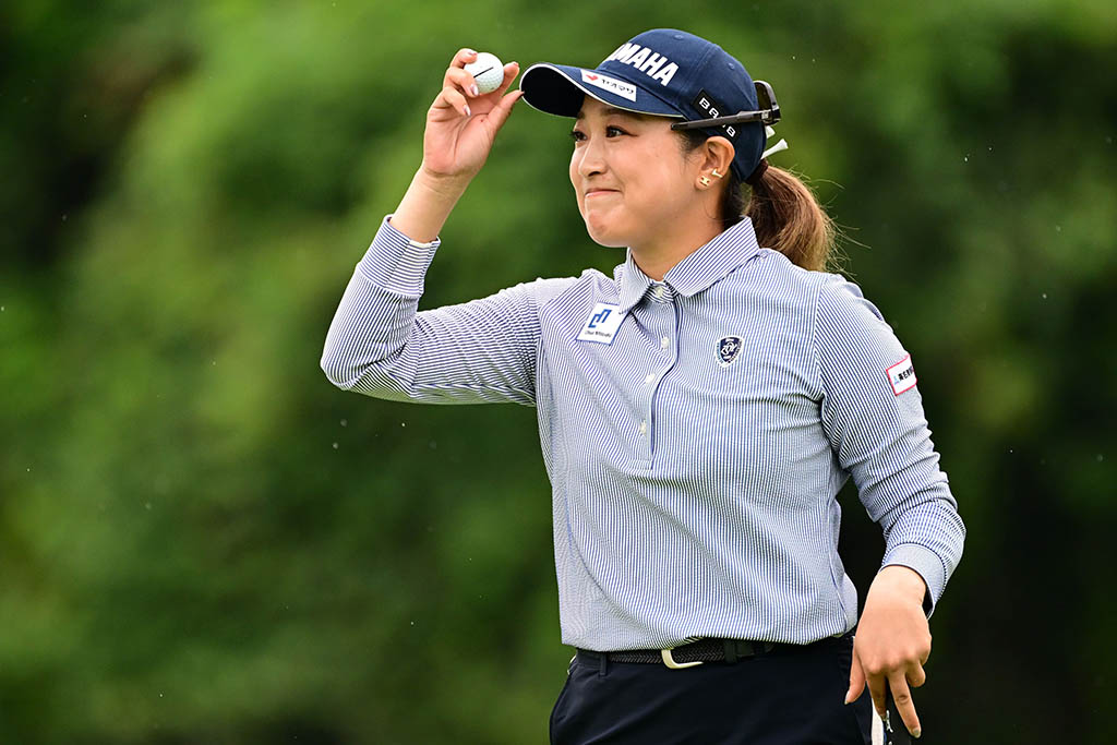 「きょうの目標、通算10アンダーに届いたのは良かった。きのうに続いて、パッティングがすごくいい。18番はいいバーディーをとれました。2オンを考えたけど、足場が悪く、無理をせずに第3打で勝負。戦略通りでした。あすから女子オープンではじめての決勝ラウンドです。2サムでプレーできる特別の雰囲気を楽しみたい。(目標は)高いところを見て、(最終日に)通算20アンダー。あすもいい位置で終われるように、一生懸命プレーします」