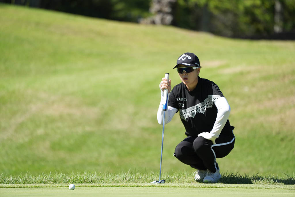「最後はバーディーパットを決めきれず、何をしてるんだ-という感じです。微妙な距離のパーパットがいくつかあったのですが、ほぼ決められてスコアを崩さなかったのが良かったです。プロの試合(JLPGAツアー、ステップ・アップ・ツアー)で最終日最終組は初めてのことですが、優勝はあまり意識せずにいきたい。満足のいくプレーができていないので、スコアを伸ばしたい気持ちの方が大きいです。ボギーを打たないように、60台で上がれたら」