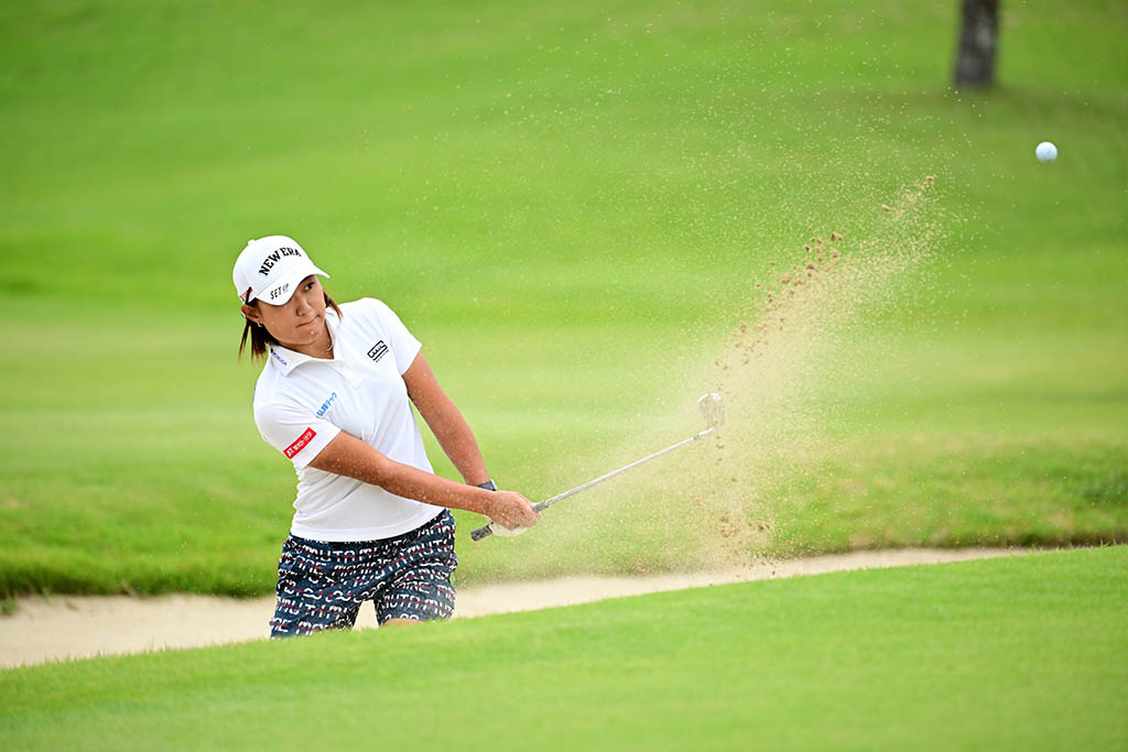 「きょうは、全体的にショットもパッティングも距離感が合っていたので好スコアにつながったと思います。やっぱり海外から帰ってきている選手がいると大会も盛り上がりますし、アメリカ組と一緒に回るために頑張ったと言っても過言ではないです。あすは、雨予報。ティーショットが飛ばないと思うので、きょうより長いクラブを持ったときに、いいバーディーチャンスをどれだけ打てるかがカギになるかな」