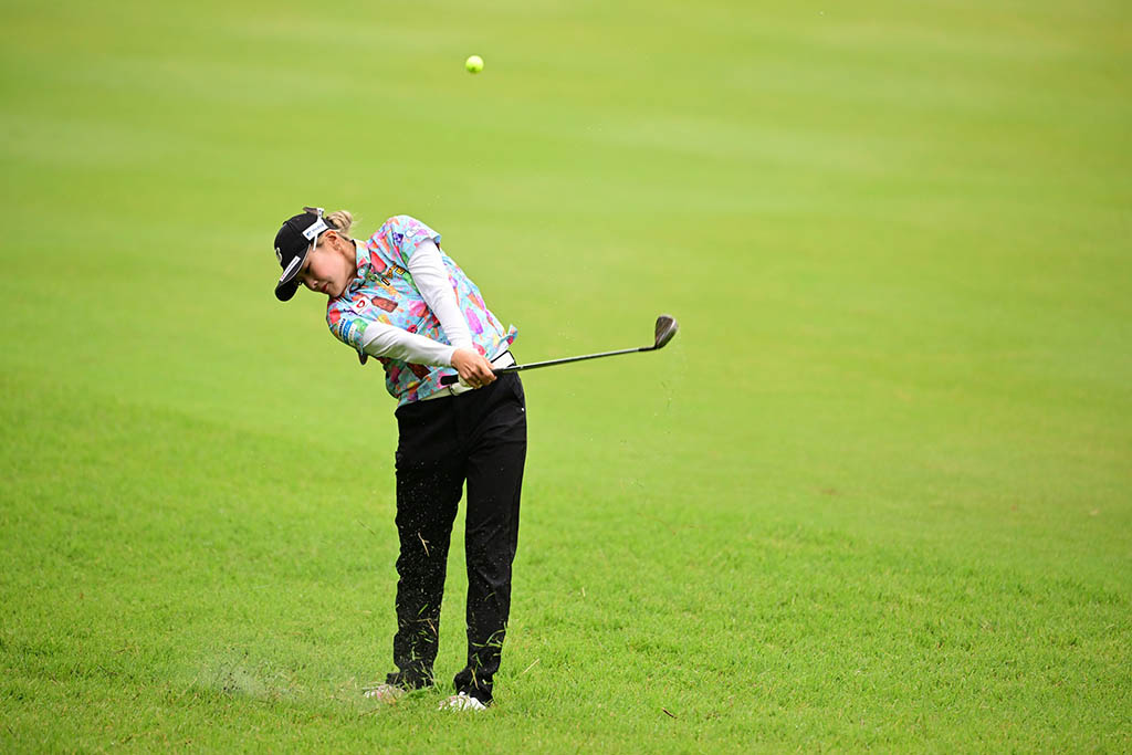 「寒かったし、コンディションは厳しかった。もったいないボギーが多かったんですけど、それなりにスコアを伸せることができて満足です。久しぶりの最終組なので、すごく楽しみです。大会を盛り上げられるように、1打1打集中して魅せられるゴルフができるように、頑張ります。スコアの目標はありません。何も変わらず上を目指してやります」