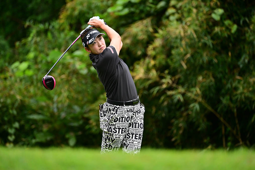 「きょうはダブルボギーの9番ホール以外は良かったと思います。渋野さんとは、たぶん小学生ぶりくらいでしたが、一日すごい楽しくラウンドできました。きょう、5アンダーを目指していたので、あと1つ伸ばしておきたかったですが、また、あすは目標の15アンダーに向けて、伸ばしていけるように頑張りたいです」