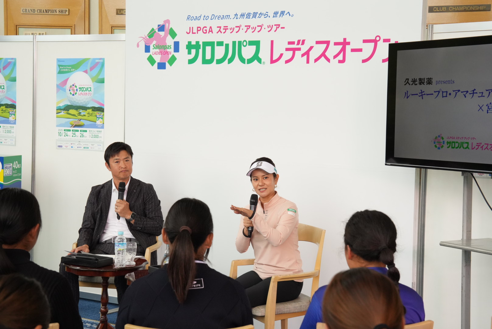 「九州佐賀から世界へ」というコンセプトのもと、久光製薬創業の地・佐賀県で開催される本大会。10月22日の指定練習日に、将来世界へ羽ばたいていくルーキープロ、アマチュア選手を対象に、久光製薬が長くバックアップしている宮里藍との座談会が行われた。
