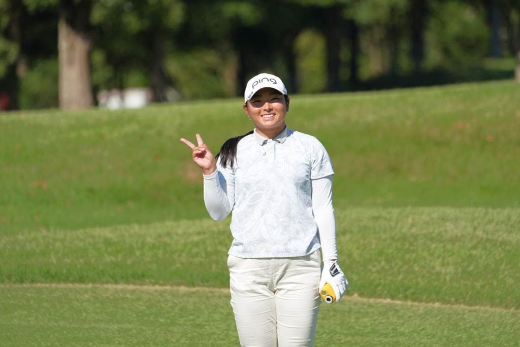 「きょうは、もう上出来なラウンドでした。パーオンしたのは5-6メートルくらいが多かったので、ラインの読みが良かったですね。奇跡のようなチップインもありました。ティーショットは曲がりすぎていたので、途中からは開き直って。ショットさえ良ければ、もう少し上にいけると思う。トップ10目指して頑張りたいです」