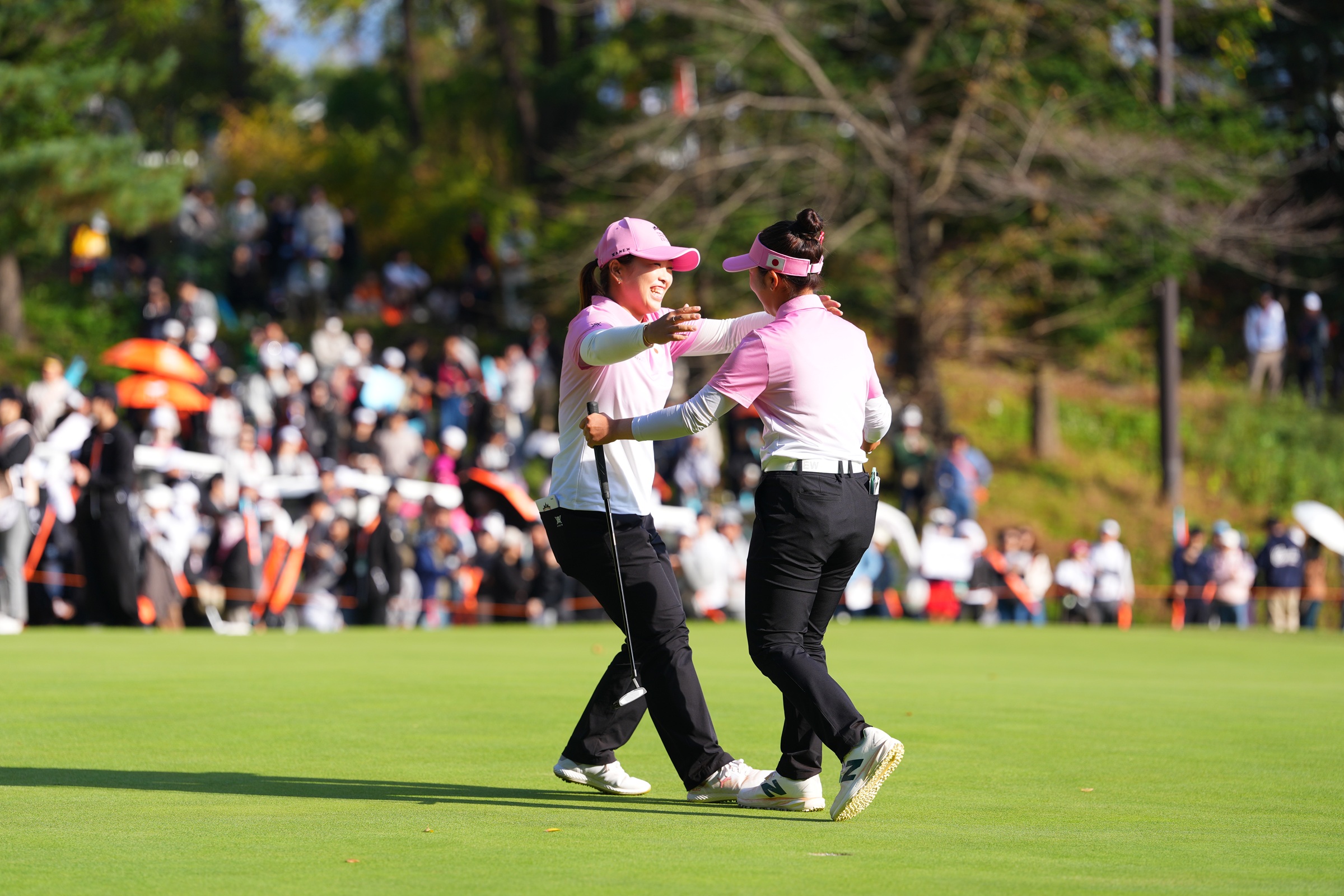 前2日からペアを組み替え臨んだ日本は、古江彩佳&竹田麗央がコ ジンヨン&ユ ヘランと対戦。前半でリードを奪うが、後半に追いつかれドロー。準決勝進出の行方は後続の山下美夢有&西郷真央へ託された。