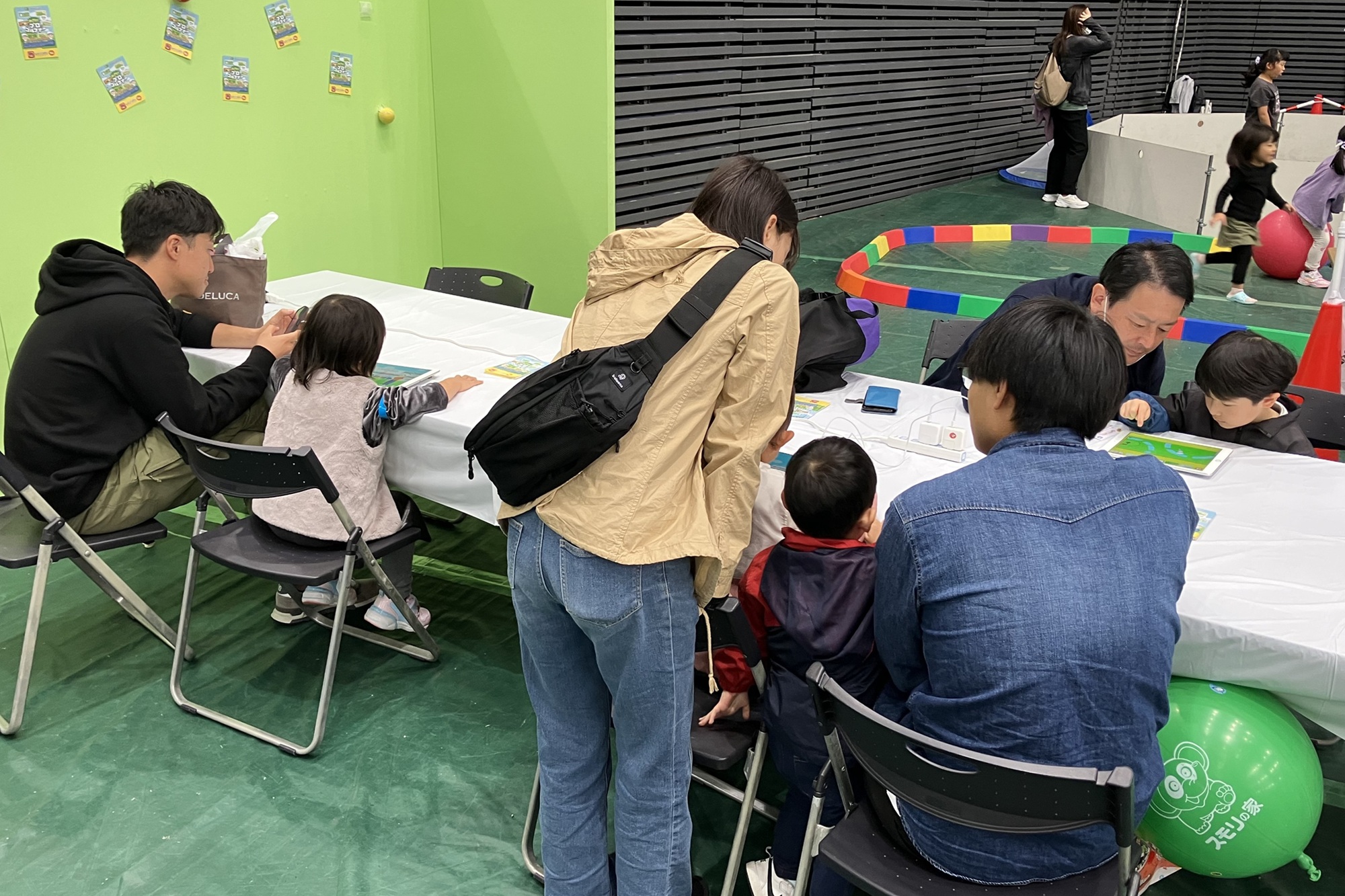 また、株式会社タカラトミーアイビスと提携し、開発した児童用ゴルフアプリ「めざせ!プロゴルファー」体験コーナーも設置。こちらも多くの子ども達がプレー体験を楽しみました。