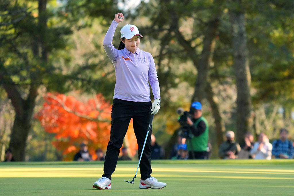終わってみれば、年間女王に輝いた2位の佐久間朱莉に3差をつける快勝。「後半、自分のリズムでちゃんと、プレーができました」と納得の表情を浮かべた。今回、Vの原動力となったのはパッティング。
