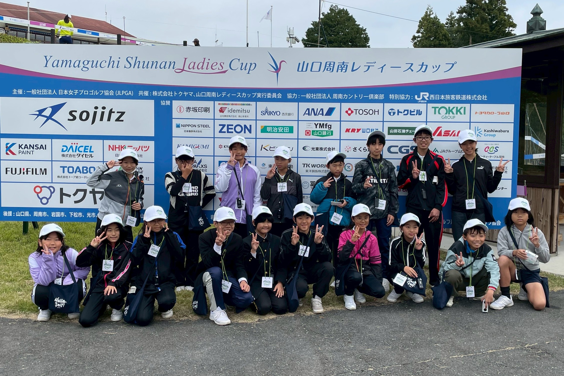 開催地の周南市の小中学生と柳井学園高等学校の生徒を招待。2日間合計175人が開催コースの周南カントリー倶楽部(山口県)を訪れ、ツアー観戦、ボランティア体験、放送センター見学、ギャラリープラザ見学、スナッグゴルフ体験を楽しみました。