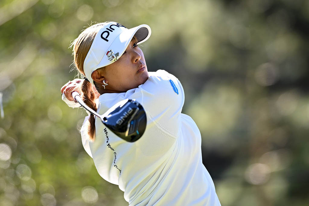 JLPGA ツアー2025シーズン最終戦『JLPGAツアーチャンピオンシップリコーカップ』(賞金総額1億2,000万円・優勝賞金3,000万円)の第2日が、11月28日、宮崎県宮崎市・宮崎カントリークラブ(6,543ヤード/パー72)で行われた。1番パー4でイーグルを奪った穴井詩が通算6アンダーで単独首位に浮上。1打差の通算5アンダー、2位タイに岩井明愛と鈴木愛。通算4アンダー、4位タイに岩井千怜と古江彩佳が並ぶ。