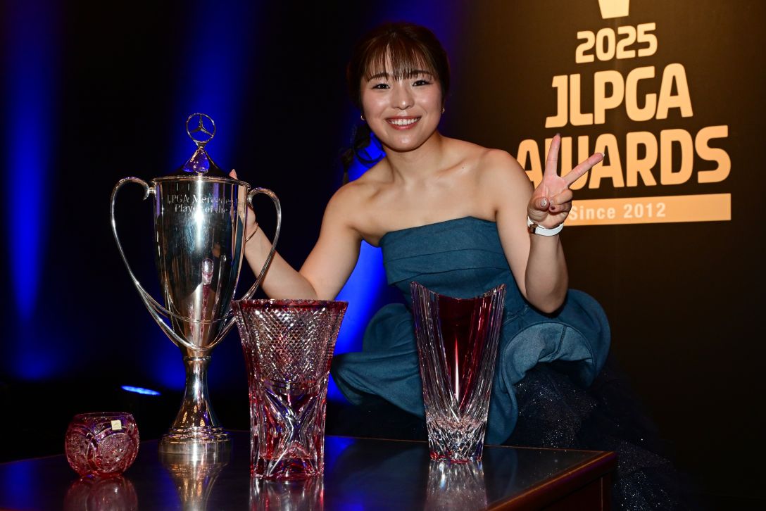 「今年はツアー初優勝を目標にシーズンへ入った。まさか4勝もできるとは思ってもいなかったです。アワードに出席するのは2回目だけど、年間女王としてステージに立てるなんて…。ありがとうございます」と言葉が弾む。