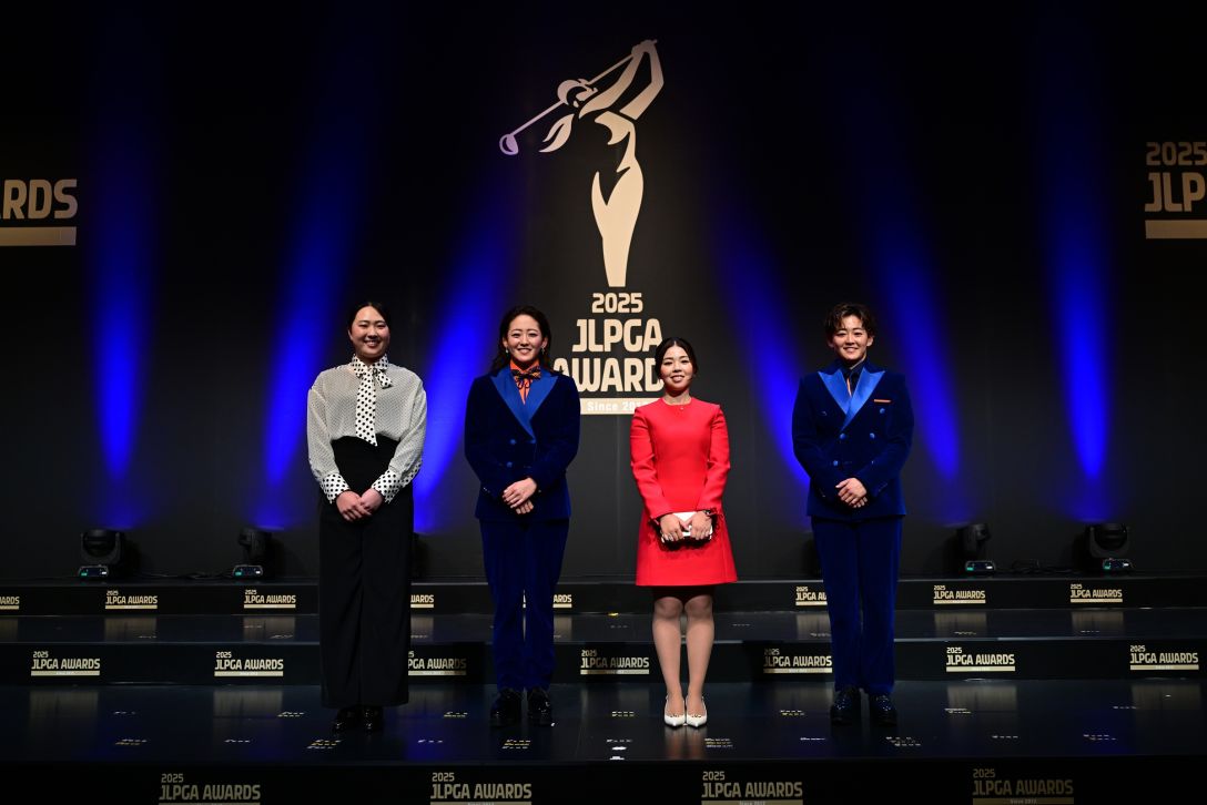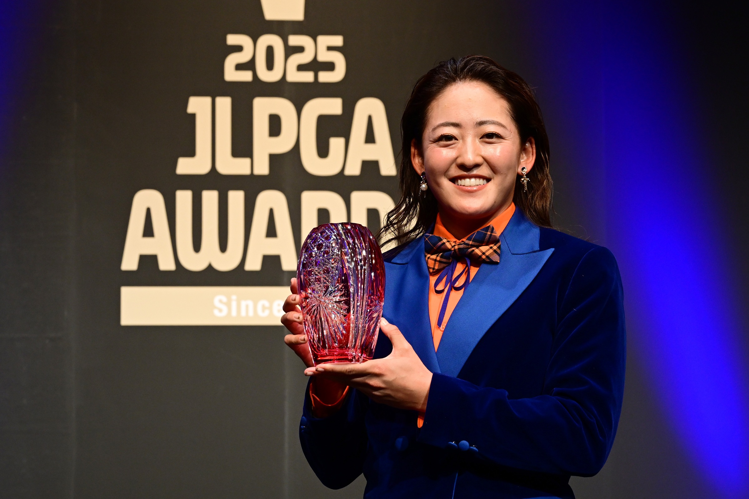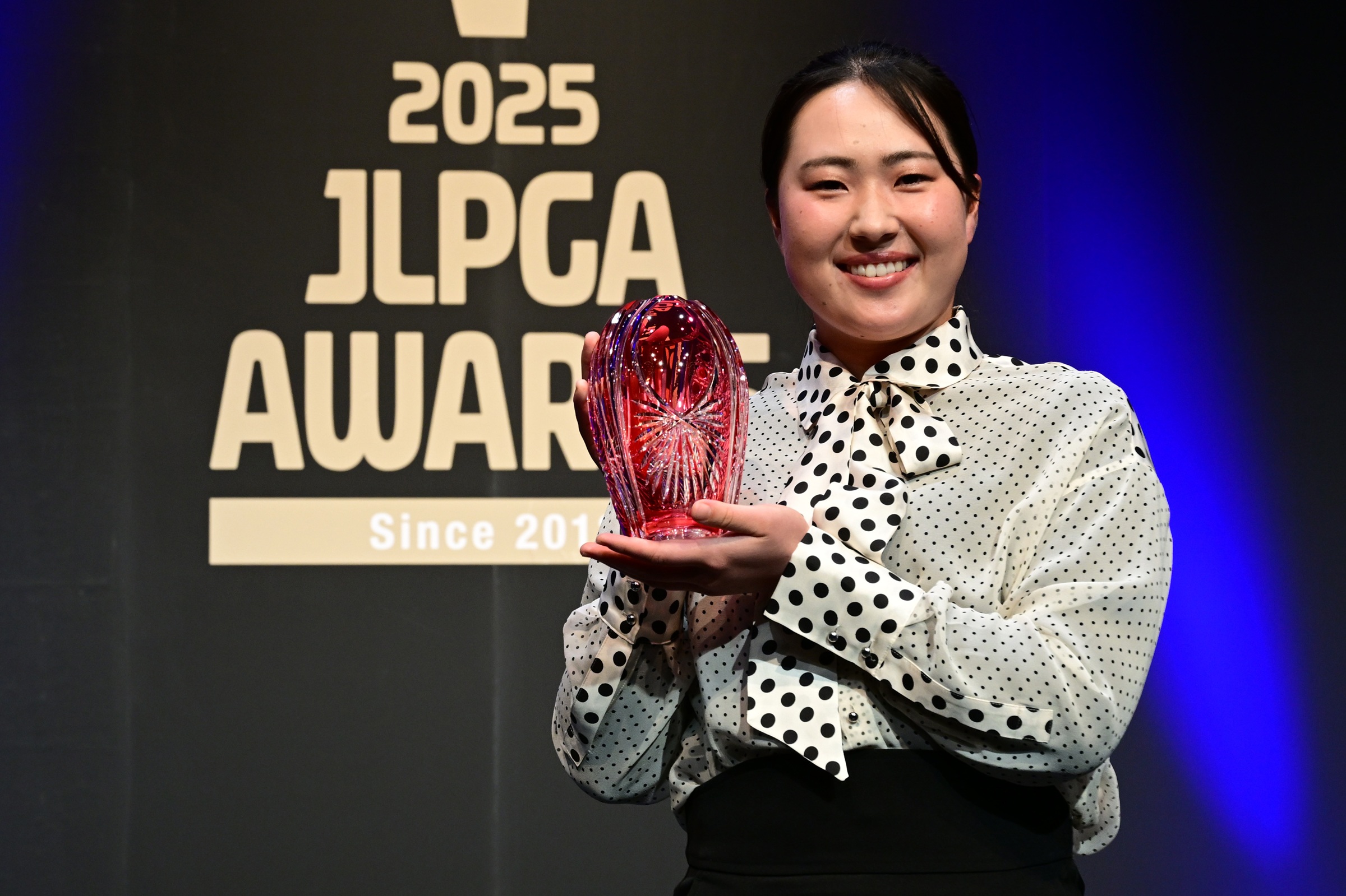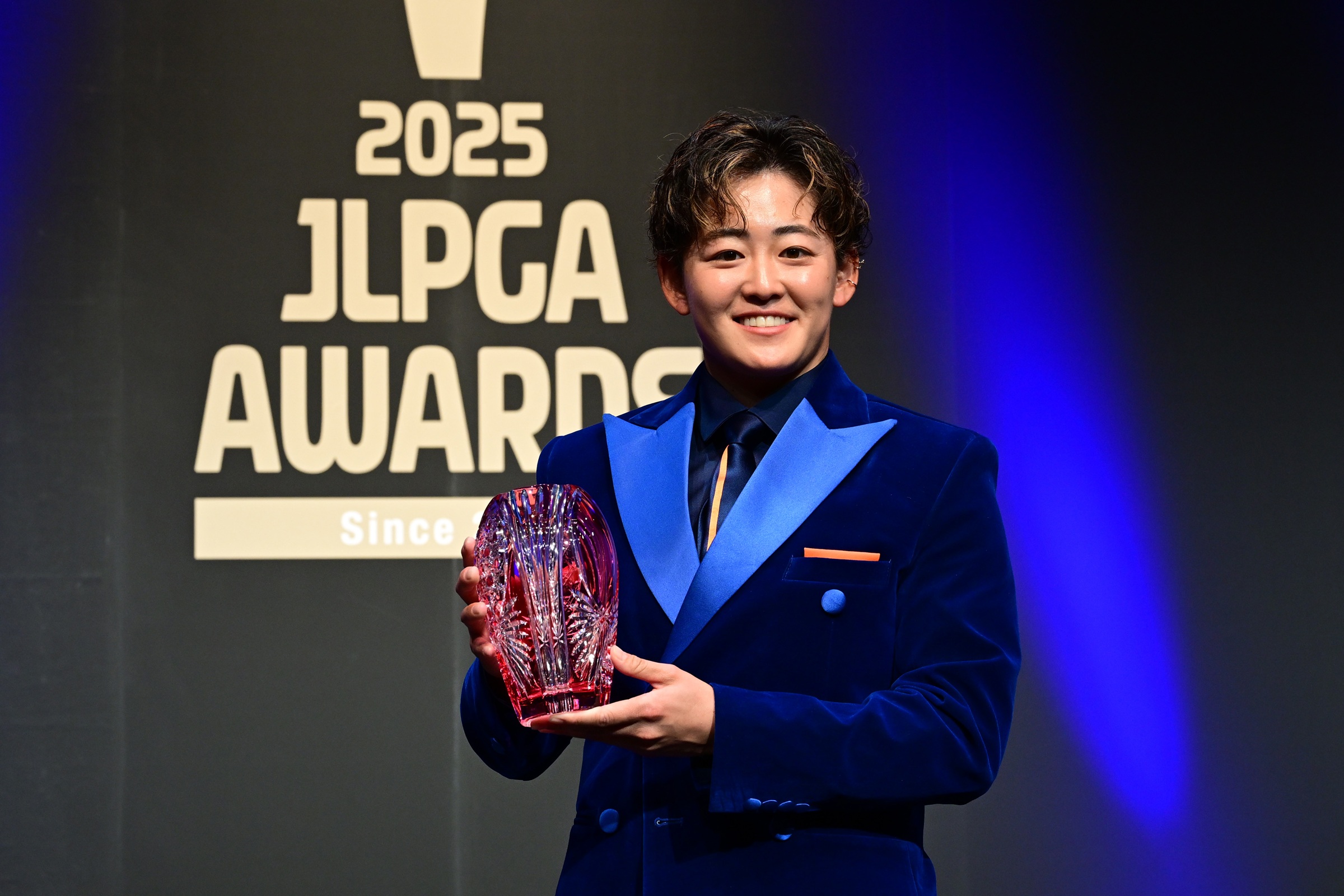 JLPGAアワード2025には今季、USLPGAツアーに参戦した13人の内、5人が敢闘賞を受賞。メジャーの『AIG全英女子オープン』、『メイバンク選手権』を制し、日本人選手3人目のUSLPGAツアー新人賞・山下美夢有はJLPGA輝き賞、敢闘賞の2冠に輝いた。