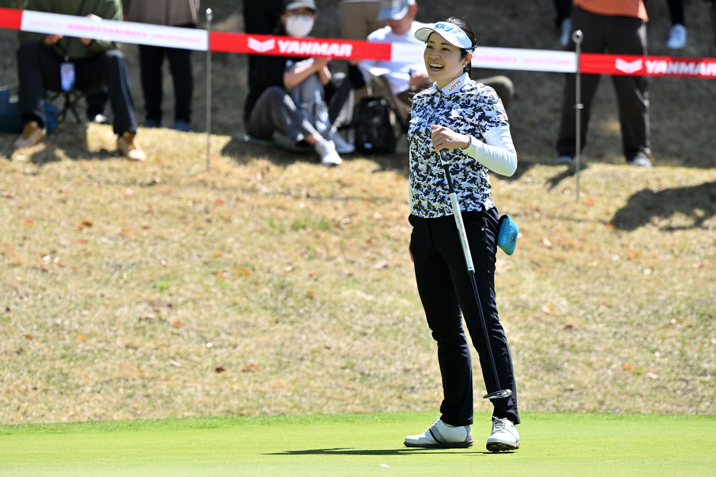 「きのうの雨でグリーンが止まったので、いいショットがいい結果になりやすいコンディションでした。ゴルフの調子も、体調もメンタルもバランスがとれていい状態です。前週のJLPGAツアーでもいいプレーができて、シード権やリランキングに向けてのランキングもよくなってきました。今後は、JLPGAツアーメインで出場していきます。今年の目標は、JLPGAツアーでの優勝です。次週のKKT杯バンテリンレディスオープンも楽しみです」