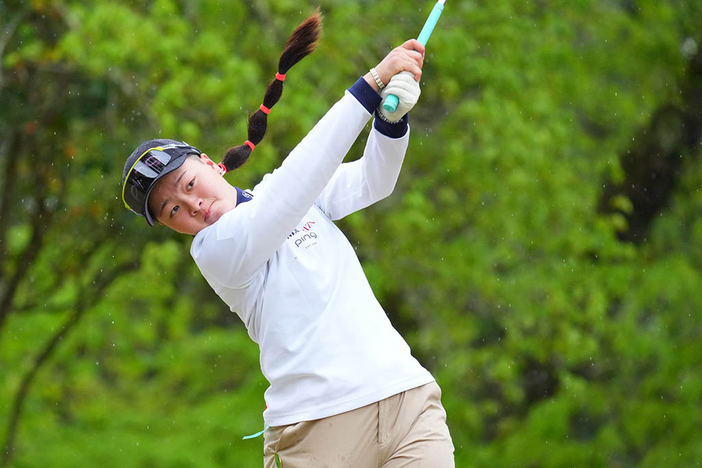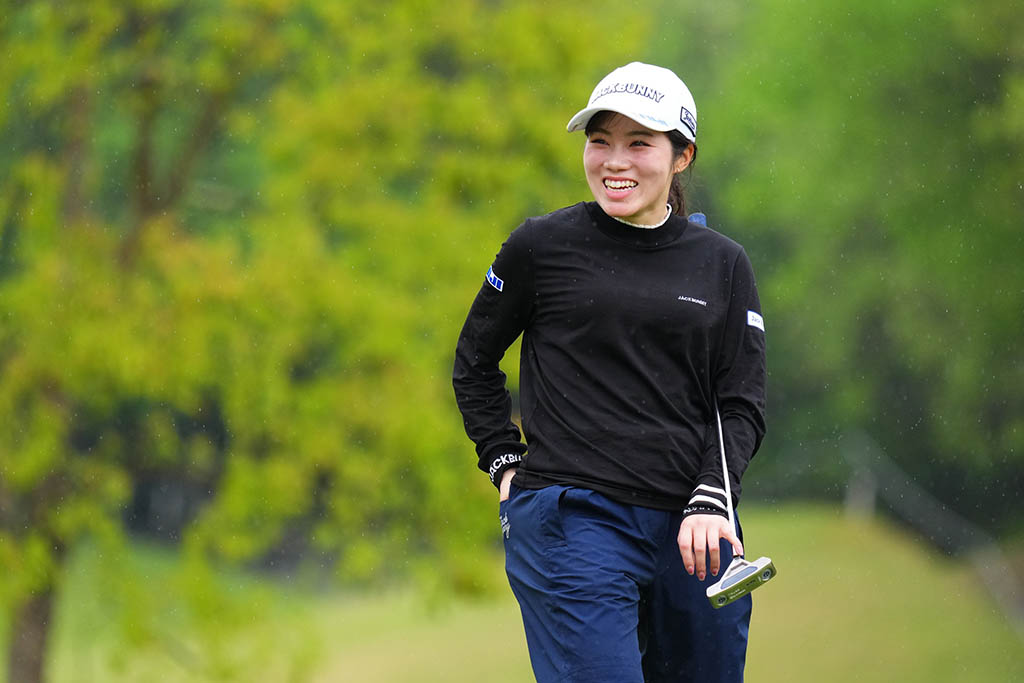 「きょうはショットもパッティングもよかったです。後半ピンチもありましたが、運がよかったところもありますし、最終ホールでもガッツパーを拾えました。先週の試合でもそうでしたが、最終日にいつも崩れがちで、ふわふわしてしまうので、もっと集中してやろうと思っていました。今週はQTだと思ってやっています。まだ優勝したことがないので、今シーズンの目標は優勝すること。あすはさらに集中したい」