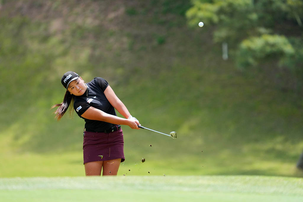 「きょうは、ティーショットがよくなかったです。後半、全く伸ばせなかったので悔いが残ります。セカンドショットの位置、ライが悪かったりと、ちょっとしたところで苦戦していました。もっともっとショットをピンに付けていかないといけないなと感じたので、そこを磨いて、誰にも負けないくらい強い選手になっていきたいです」