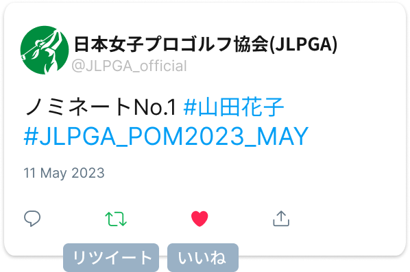 JLPGA公式Twitterにおける“PLAY OF THE MONTH” ノミネート投稿に「いいね」または「リツイート(引用リツイート)」で投票