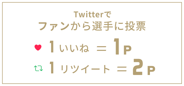 ファン投票:1いいね=1ポイント、リツイート(引用リツイート含む)= 2ポイント